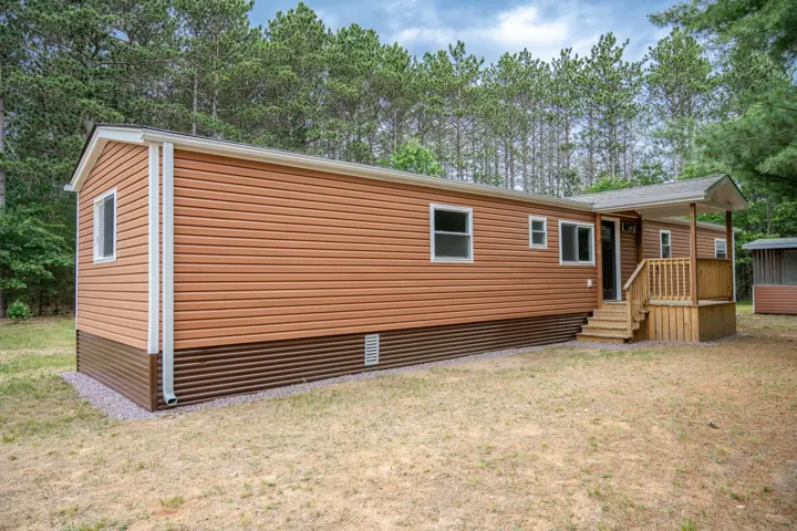 Prime location for this totally remodeled and move in condition manufactured single wide house. Everything is new: drywall, flooring, plumbing, electric, furnace, A/C, kitchen with stainless steel appliances, modern bathrooms, siding, skirting and roof. There is 12×20 gazebo to enjoy large gatherings or simply lounging on the hammock with a good book and cup of coffee. 7×7 front porch & 9×10 back deck. Did I mention brand new 24×25 garage with concrete floor and electric? OFFERED WITH 2.96 WOODED ACRES. Woods consists mixture of towering pines and oaks. Just over 2 miles to Castle Rock Lake boat launch and small sandy beach. On ATV route & super close to snowmobile trail. Fiber internet and natural gas at the road!