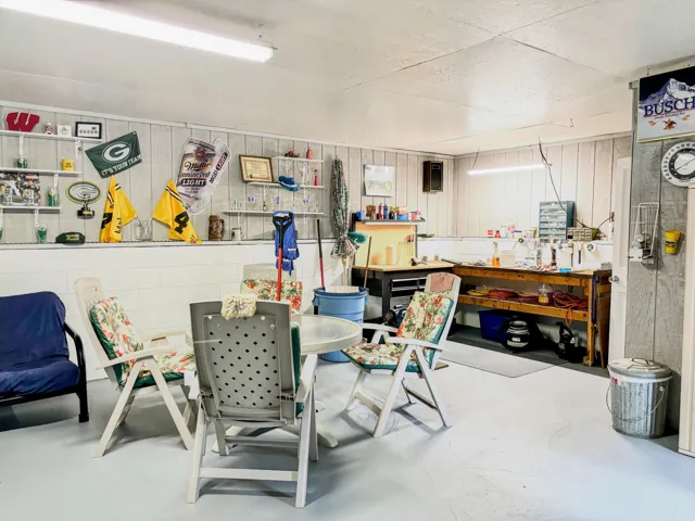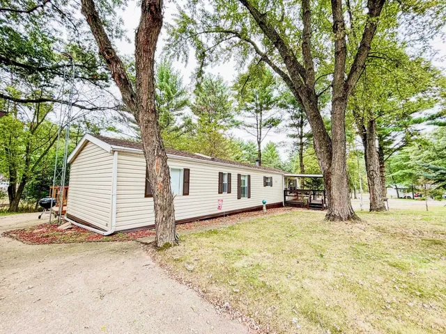 Welcome to this charming, very well-maintained single wide manufactured home that sits on a double lot with mature trees and includes 2 bedrooms and 1 bathroom. The property boasts a spacious, detached garage/studio with a wood stove for heating, air conditioning, and a full bathroom with a shower. Recent upgrades include a newer well, septic system, deck, and roof. Situated close to Wisconsin’s fourth-largest lake and just 30 minutes from Wisconsin Dells, it offers the ultimate blend of tranquility and accessibility.