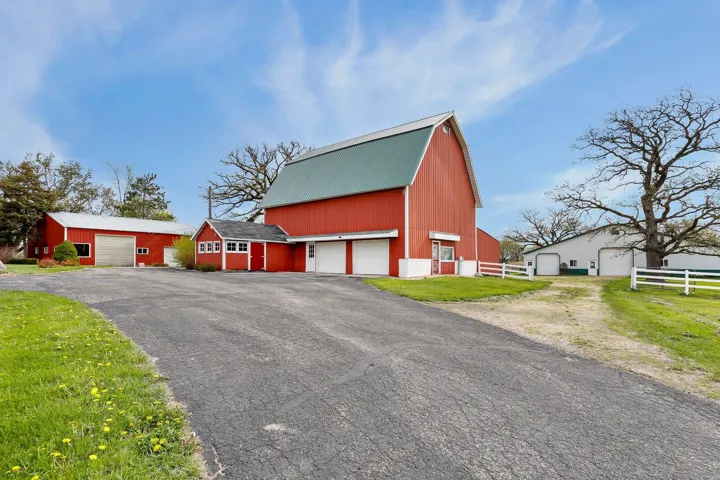 Step into the countryside & discover this exceptional 41+ acre horse farm nestled between Oregon & McFarland! This property offers a unique opportunity for equestrian enthusiasts and outdoor lovers alike with the centerpiece being a 5-bdrm home bursting with character & comfort. Inside you’ll find multiple living areas, an updated kitchen, gas stove, & timeless wood accents. Beyond the home live multiple outbuildings including a barn w/ a milk house & garage, pole barn with well-equipped horse stables & tack rm, heated workshop, add’l storage shed, & more. The land itself is a picturesque blend of pastures, open fields, & wooded areas – including 7 gorgeous heritage Oak trees! With ample space for equestrian & hobby needs, this expansive property is a rare find! New septic system in 2025!