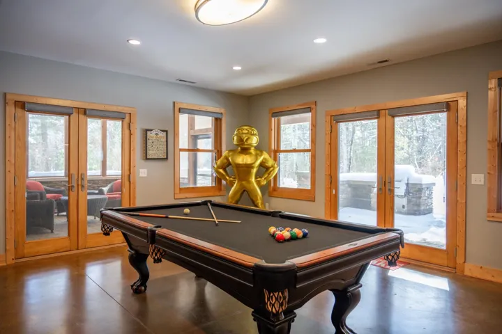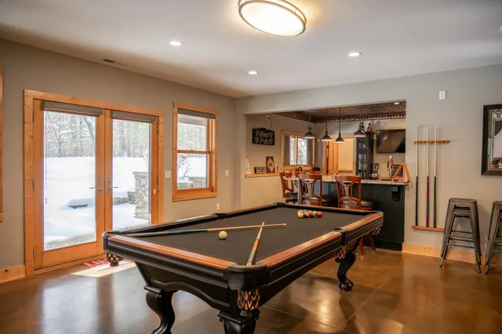 Luxury Castle Rock Lake Retreat – 6BR/4.5BA Discover your ultimate lakefront escape in this almost new, fully furnished home nestled on a wooded double lot w/493′ of frontage on Castle Rock Lake, WI’s 4th largest. This stunning 6-bedroom, 4.5-bathroom retreat boasts a BRAND NEW ROOF, NEW EAVES, & NEW BUILT-IN OUTDOOR GRILL. Enjoy an indoor heated pool, outdoor paradise w/hot tub, firepit, & screened porch. The lower level features in-floor heating, a rec room w/billiards & wet bar. The chef’s kitchen impresses w/custom-crafted ceilings, vaulted beams, & beautiful hickory floors throughout the main level. A luxurious main-floor primary suite offers convenience, a sunroom ideal for relaxation or home office. A spacious 3-wide, 2-deep garage, + extra-deep storage. Truly an exceptional home!