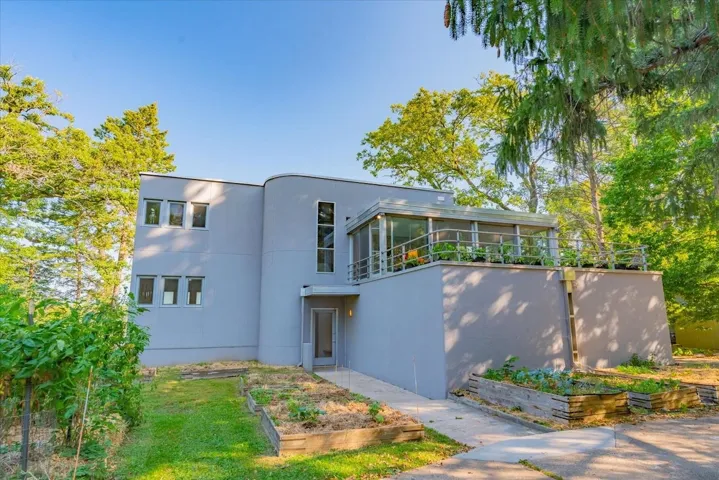 Here’s your chance to own an architectural gem on Lake Monona! The Toby Curtis House evokes many Bauhaus elements, and it’s stunning. Built in 1937, this International Style house was designed by famed Madison architects Beatty & Strang. The property, situated at the quiet end of Waunona Way, spans 3 city lots totaling .58 acres, has just over 130 feet of shoreline, and a view of the Capitol. The commercial style kitchen is truly a cook’s kitchen, with SubZero fridge and massive commercial Wolf range. European windows can open as both casement or awning. Entire stucco exterior recently replaced by Bachmann Construction, supervised by Jon Freiburger. Old boathouse may be rebuilt using same footprint.