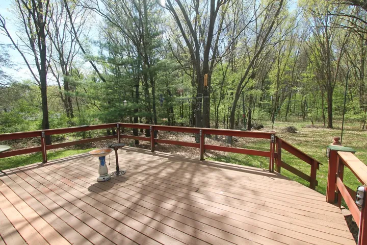WELCOME HOME: This bright, clean and well-maintained ranch style home is situated on a large country acre and offers great wildlife viewing in this fully wooded setting near the end of a Cul de sac drive. Kitchen offers great storage, cabinet space and pantry. Living room has vaulted ceilings and gas log fireplace. Dinette area offers views and walk out to a large deck overlooking the private, wooded backyard . Master bedroom has a private bath and walk-in closet. 2 good sized bedrooms and full bath on opposite end of the home offers room for guests. Conveniently located main floor laundry/utility room area. Full dry basement could be finished for added living space. Updates include a newer roof and furnace. 2 car attached garage has a 4-season workshop