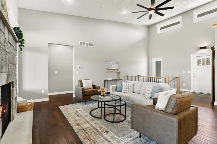 Experience elegance and comfort in this stunning 4-bedroom, 3.5-bath ranch on a sprawling 1.35-acre lot! Designed for effortless living, the open floor plan boasts vaulted ceilings, real hardwood floors, and a striking two-way fireplace connecting the living room and back covered patio. The chef’s kitchen impresses with a grand island, hickory cabinetry, and large walk-in pantry. The split-bedroom layout ensures privacy, while the expansive lower level with egress windows offers a den, office, bedroom, full bath, and separate garage access. Nestled in the prestigious Rollingwood Subdivision, you’ll enjoy scenic serenity with easy access to Highways 14 & 51. Turnkey luxury awaits—schedule your private tour today!
