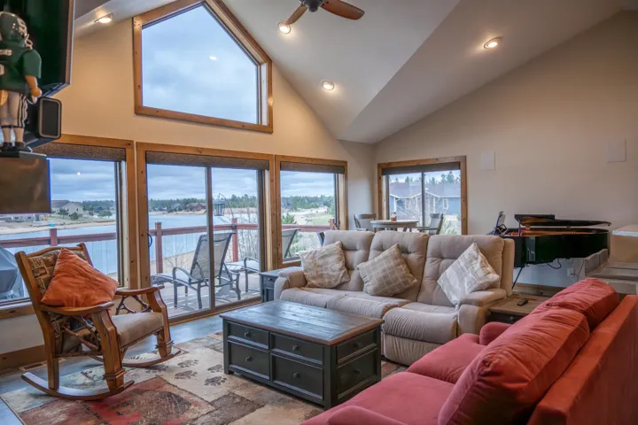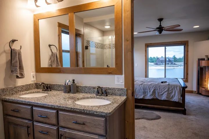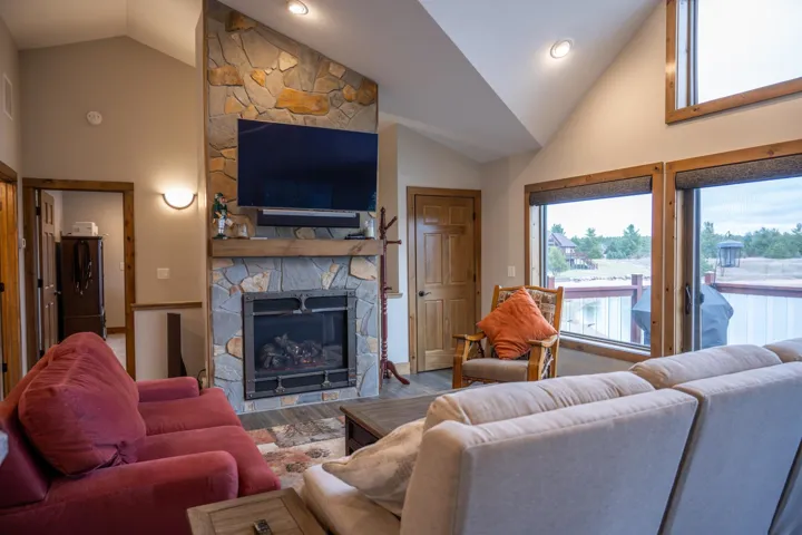 Not your average lake home! This luxury smart home on Stone Gate Lake is packed with high-end upgrades including quartz countertops, custom Amish cabinetry, heated tile floors, gas fireplace, Sonos system, Lutron lighting/blinds, and more. Open concept main floor w/great views. The spa-like primary suite features a large tiled shower with rainfall showerhead, bidet, and heated floors. Enjoy lake views from nearly every room of the home, two fireplaces, an upgraded kitchen pantry and wet bar in lower level. Home offers extra closets, zoned heating, an invisible pet fence and hot tub hookup. Three car garage for storage. Home is in immaculate condition. Minutes from Castle Rock Lake—this one stands apart.