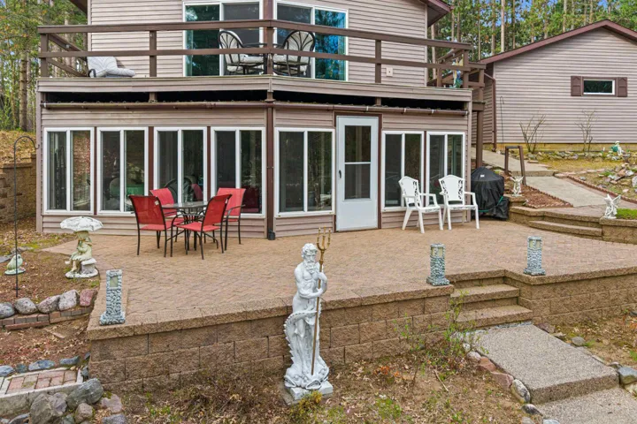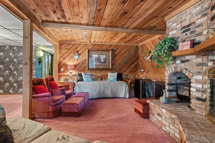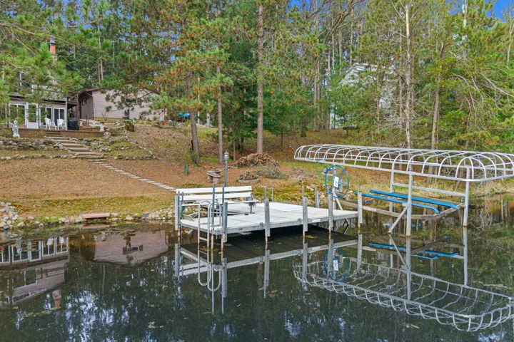 Lake Sherwood waterfront retreat on a rare double lot w/152’ of frontage! Arrive on a concrete horseshoe driveway & step inside to an inviting open-concept layout featuring cathedral ceilings, cozy fireplace & lakeside dining w/breathtaking views. Spacious deck & 3-season room with a wall of windows make it easy to soak in the scenery year-round. Finished walkout basement adds living space w/large rec room, family room with a second fireplace & bonus guest bedroom (non-egress). Recent updates include siding (2017), seamless gutters (2022), and a metal roof on the 3-season room (2016). A 2-stall garage plus extra paving offers plenty of parking. Town of Rome—home to 4 lakes, Sand Valley & Lake Arrowhead golf, hiking, biking & UTV trails. Pier & Lift Incl, just bring the boat!