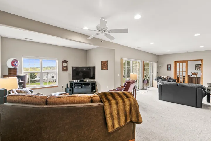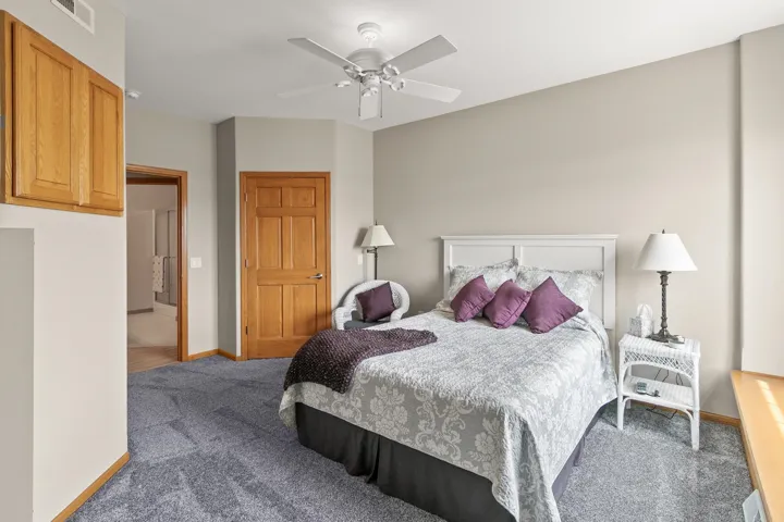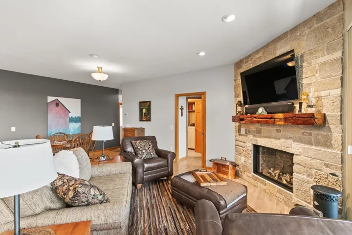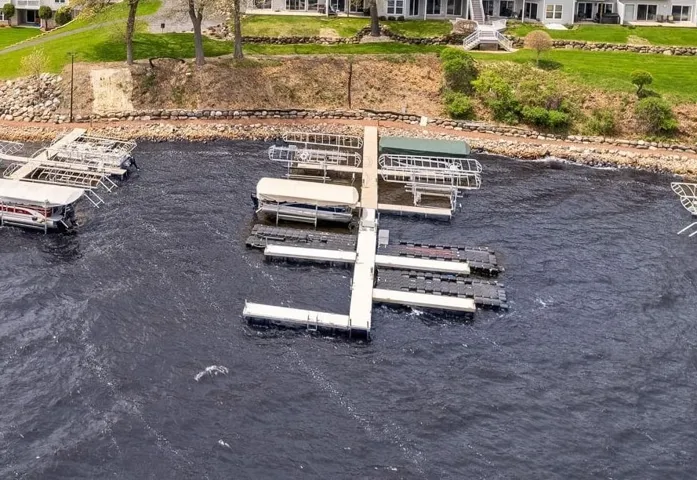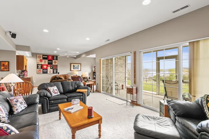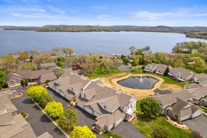 Stunning, fully updated Paradise Island Condo with amazing sunrise views of the lake & surrounding bluffs! Outstanding opportunity to own this immaculate 2,830 +/- sq ft main level unit! This property features an open kitchen with granite counters, Amish custom cabinets, stainless appliances & gas stove, a living room with a stone gas fireplace, oak flooring, and a large private maintenance-free deck with power screen. Enormous primary suite with a custom walk-in shower & jetted tub. Exposed lower level features a 3rd bedroom, large rec room/family room with walkout to screened patio! Lake access w/ designated boat slip #D10 and included straight drive-in “Jet Dock” boat lift! 2 Car Garage too! Enjoy the Okee area with walking paths, a park, two restaurants, and the Ice Age Trail nearby!