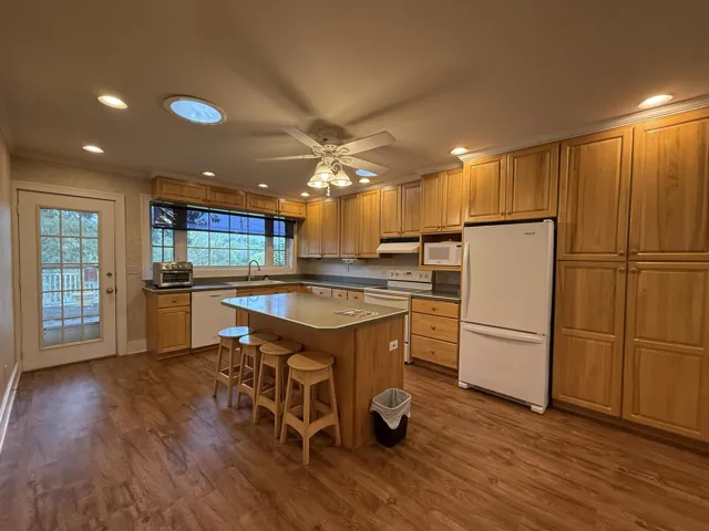 Rock River summers are now available! 4 bedroom home in the same family for 55+ years! Spacious living room with an elegant fireplace. The connecting den and 3 season room overlook the river. Gourmet maple kitchen w/island opens to a large dining room. Numerous windows replaced with water front focus from many rooms. New carpeting on main floor. The north wing of the house could be a perfect mother in law suite with LR, kitchenette, half bath & stairs to the upper bdrm. Large bedrooms, a full bath and closet space upstairs. 100+ feet of Rock River frontage on this .69 acre rolling parcel. Extra 1 car shed is good for the mower and water accessories. 2 car garage and extra paving for plenty of parking. Furnace, central air and splits recently updated. Owner’s pride shines inside and out!