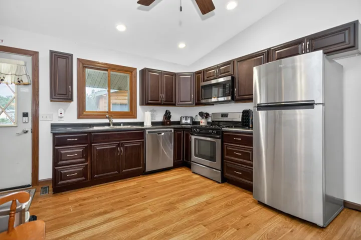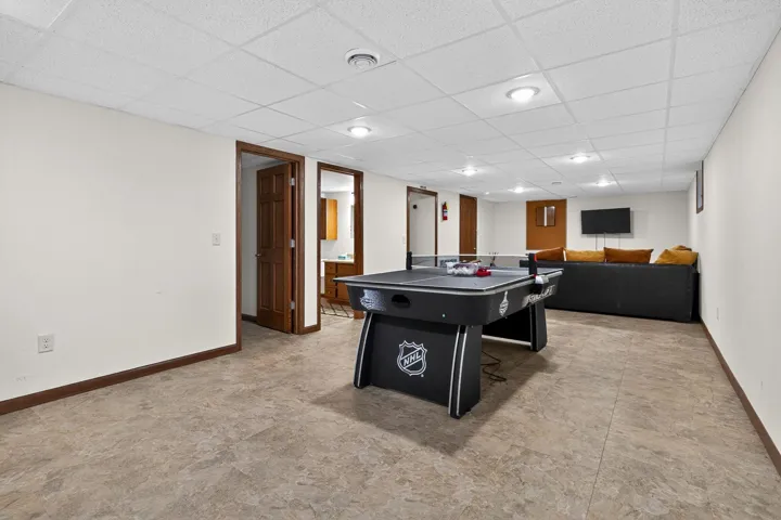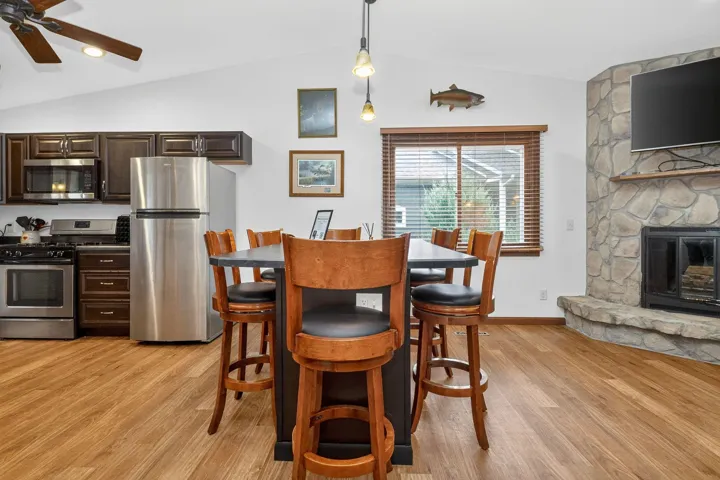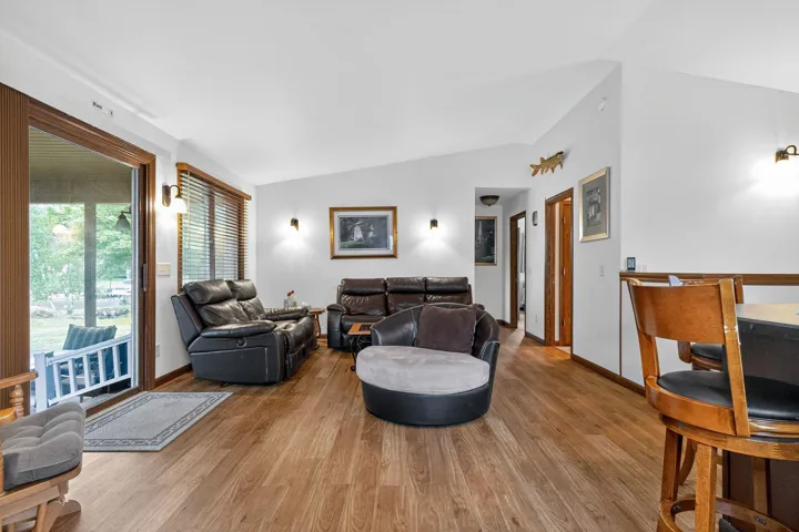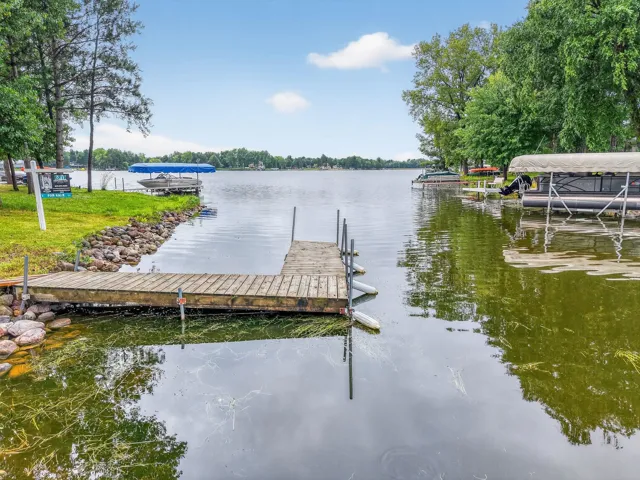 Breathtaking waterfront location with 3+Bedrooms lives much larger then it looks from the front view, spacious open floor plan flows from an updated kitchen to Living room with fireplace and out to the patio where you will find a stunning yard and view of the level lake frontage. Two piers with space to add a boat lift, beach area to relax, kids to play. The lower level features a large open rec room that could easily add another bedroom. Fully furnished and move-in ready. Just minutes from the world-renowned Sand Valley Golf Resort, this home is ideally positioned for use as a short term rental while you’re away or private retreat or year round residence. New Septic installed 2006.