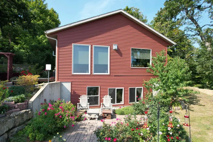Imagine enjoying your morning coffee with the Best View of the Mississippi River you will find anywhere. This wonderful 2 bedroom 2.5 bathroom home sits on 1.5+ acres on a point overlooking the river. Watch Eagles soar, the river roll by, incredible sunrises greet the early riser! Landscaped for enjoyment but easy maintenance, with multiple patios to enjoy the peace, quiet and unbeatable views. Main floor features sculpted Hickory flooring, eat in kitchen, living room, bedroom w/walk-in closet and private bath, laundry with 2nd full bath. The lower level has a rec room, 2nd bedroom, 1/2 bath, workshop and lots of storage. A 1 car detached garage and 2 garden sheds round out this great property. Owners share in a bonus 32+ acre recreational common area.