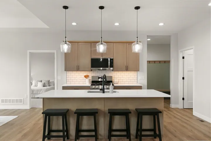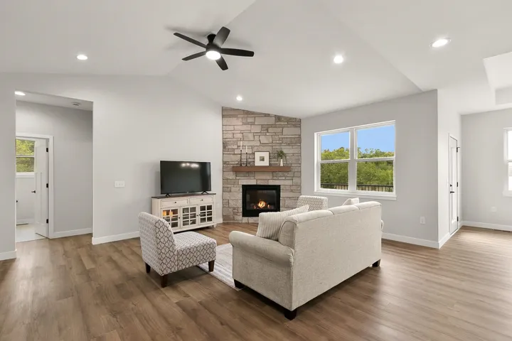 Welcome to this beautifully designed new construction home nestled on a half-acre lot. Step inside to an open-concept layout with Shaw flooring throughout, quartz countertops, and an upgraded cabinetry line. The kitchen offers an oversized pantry and spacious island. The primary suite includes a luxurious wall-tiled shower and large walk-in closet. Enjoy quiet evenings on the covered front porch, finished with a warm pine tongue-and-groove ceiling, or unwind on the beautiful 12×16 maintenance-free composite deck with sleek aluminum railing. Built with Andersen windows for efficiency and quality, and a basement stubbed for a future bathroom, this home is ready to grow with you.