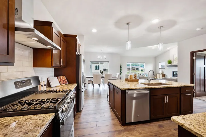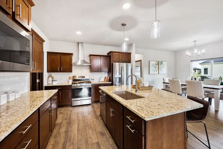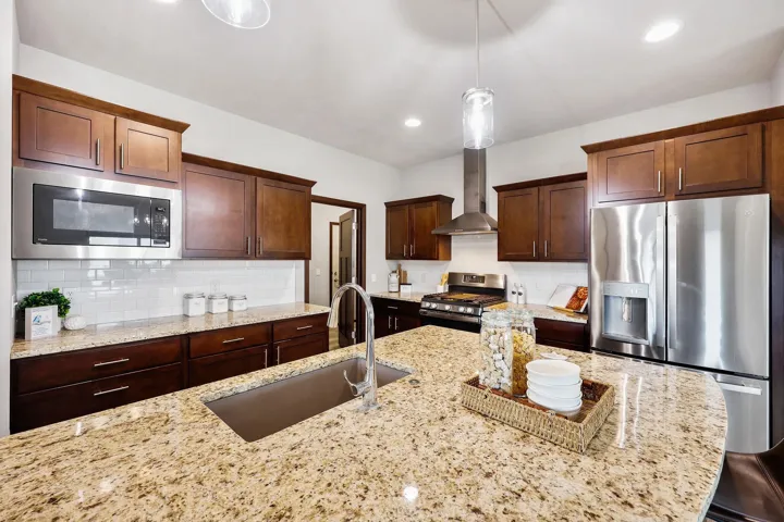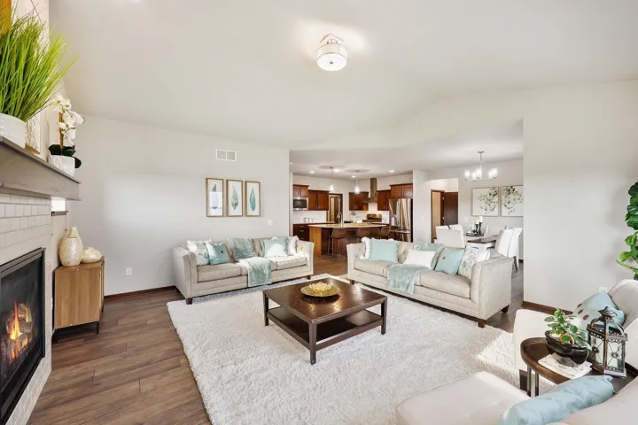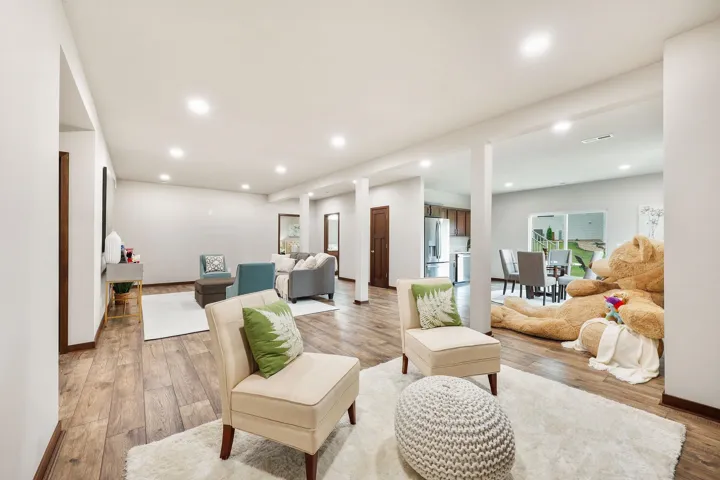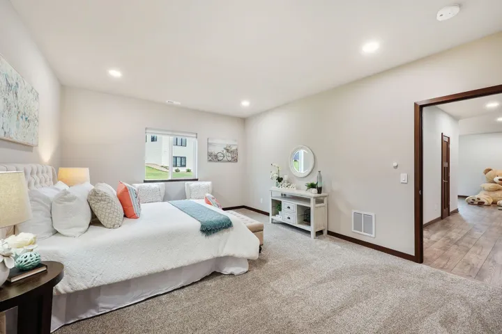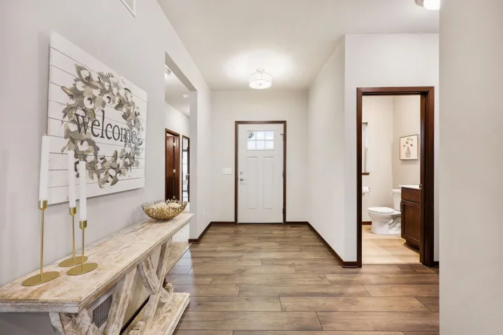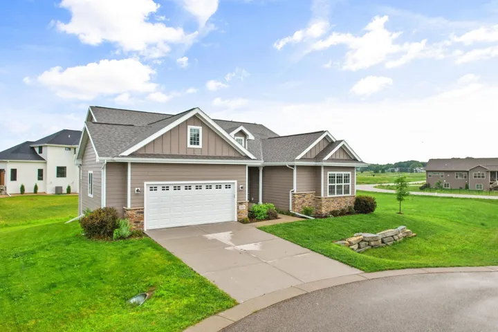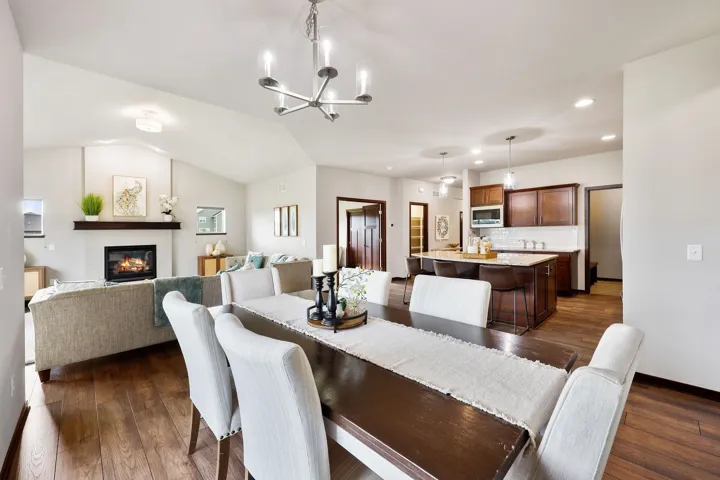 Stunning 3-year-old ranch in Bishops Bay with vaulted/10 ft ceilings on the main level & 10 ft ceilings in the finished lower level. Bright and open throughout! Enjoy an open-concept kitchen, dining, and living area with fireplace, plus a flex room/4th main lvl bed & deck–all ideal for entertaining! New LVP flooring! Chef’s kitchen features granite counters, SS appliances, and vent hood over gas stove. The private primary suite includes a jetted tub, tiled shower, and massive walk-in closet. Mudroom with laundry and cubbies! Newly renovated lower level offers a huge rec room, 5th bedroom, kitchenette, fireplace, and two bonus rooms for hobbies or workouts. Walk out to the backyard patio, perfect for bonfires! Close to Governor Nelson state park, golf courses, and community trails!