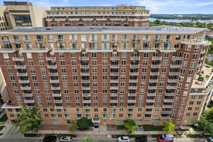 Experience downtown living at its finest in this stylish 2-bed, 1-bath condo. Amenities include in-unit laundry, covered parking, a fitness center, rooftop courtyard, dog run, and storage unit. Just blocks from State Street, Capitol Square, Overture, and a late night grocery store, this home offers prime access to it all. Enjoy an open-concept layout with large windows and a private balcony with MUST SEE courtyard views. Beautiful courtyard contains multiple grills and firepits! The kitchen features granite countertops, stainless appliances, and a breakfast bar. The spacious primary bedroom includes a walk-in closet and balcony access. Pets and rentals allowed (see docs). Lobby/hallway updates coming soon—no assessment. Second parking stall available (see docs).