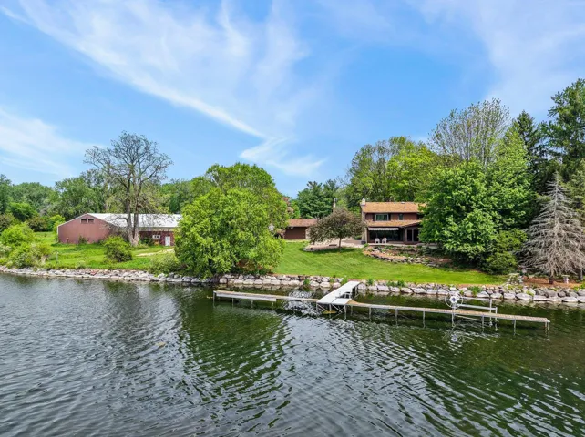Set at the end of a quiet cul-de-sac, this 3-bed, 2.5 updated bath home sits on 13+ acres w/ over 1,200 ft of river frontage & direct access to Kegonsa & Madison Lakes. A year-round pier makes boating easy. Inside, the updated kitchen with high-end appliances flows into open living spaces—great for entertaining. The sunroom offers breathtaking views of the backyard pond oasis and protected land across the river assures your sunsets will never be obstructed. Attached & detached 2-car garage, plus a combined set of outbuildings with a hobby barn, indoor riding arena, and shop with 1/2 bath (11,000+ Sq Ft). With a mix of open fields and wooded areas, this is the perfect blend of space, privacy, & waterfront living. (This property is TWO parcels–2.98 acres and 10.4 acres)