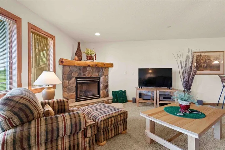 Upgraded Northern Bay Condominium Located On WI 4th Largest Lake-Castle Rock Lake! You will feel the “Up North” charm in this open concept 1st floor unit overlooking the golf course Hole #1. This building is located in a more quiet/private location but offers easy access to the pool/activity areas & the sandy beach. The 3BR, 2BA, 1781 sq ft unit features 3 large bedrooms inc. a master suite, an inviting living room w/gas fireplace, a chef pleasing kitchen, a roomy dining area, laundry area, plus a garage for all your toys. Most furnishings included. Amenities-beach, in-ground pool, workout area, & more. New water heater in 2025. Enjoy a day of golf or a day on Castle Rock Lake. Just 30 miles from Wisconsin Dells. Start making memories today!