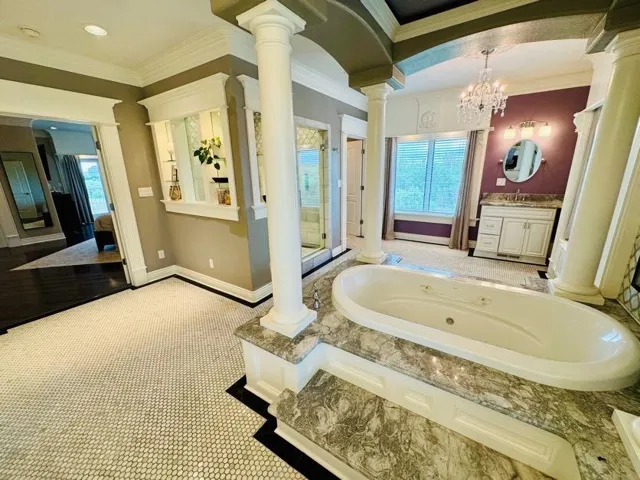 Stunning private estate in Monroe’s rolling hills, boasting over 7,000 sq ft of remodeled luxury. Italian-inspired design with custom details: Brazilian Cherry and marble floors, a grand spiral staircase, crystal chandeliers, gold-leaf accents, wainscoting, and crown molding. The custom kitchen features quartz counters, dual islands, and a farmhouse sink. Upstairs, four spacious bedrooms with walk-in closets and en-suites, including a lavish primary suite and large bonus room. The finished lower level includes an office, guest en-suite, kitchenette, rec room, a pergola and inground pool. Enjoy two levels of expansive decks with breathtaking views of the private 7-acre lot, perfect for entertaining! And minimal electric usage with the solar panels.