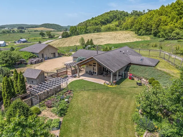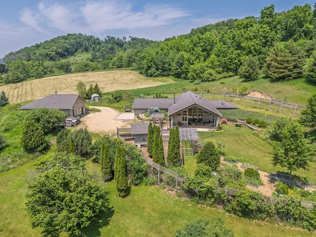 Custom crafted home nestled on 16.67 acres of peaceful countryside. Designed with comfort & convenience in mind, this one-level home features an open floor plan w/in-floor radiant heat, perfect for easy living at any stage of life. The spacious great room combines a cook’s dream kitchen—complete w/stainless appliances & snack bar—with a cozy living area featuring a fireplace & a wall of windows that showcase the beautiful gardens & lead to the inviting covered patio. The oversized heated garage is ready for cars, gear & hobbies alike. Bonus: Add’l building w/bathroom for an office, guest house, hobby shop or whatever YOU need it to be! Enjoy privacy, nature & room to grow—whether that means gardening, relaxing, or watching the wildlife roam. A true gem in the country. NEW ROOF TOO!