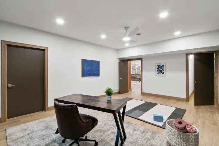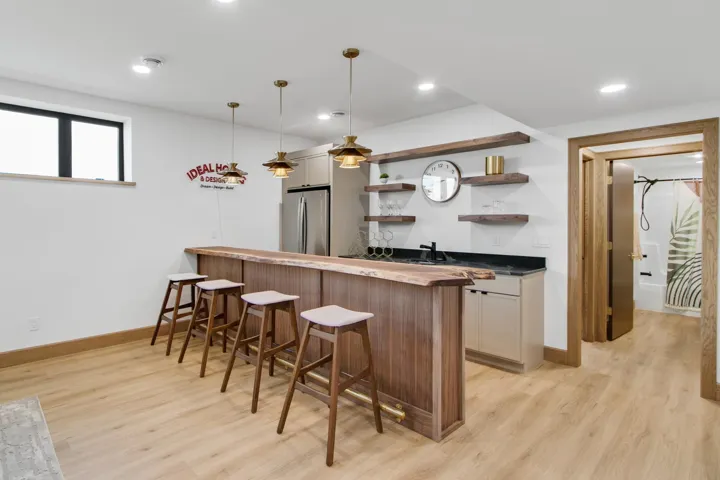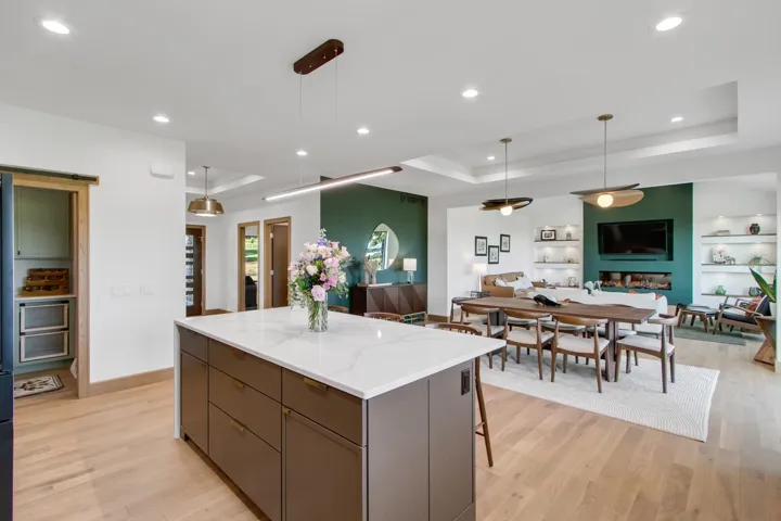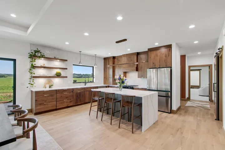 Portage 2025 Parade of Homes! This beautifully designed 4-bedroom, 3.5-bath home offers high-end finishes and showcases exceptional craftsmanship. You’ll be impressed with two private ensuites with walk-in closets and gorgeous baths. Upgrades include white oak hardwood floors and trim, black walnut cabinetry, quartz countertops with a waterfall edge, smart siding, smooth walls, tray and vaulted ceilings and luxurious tile. Step outside to a stamped concrete patio with breathtaking farm field views. Additional features include main floor laundry, butler’s pantry, wet bar and 3-car garage. Age in place with zero-entry home & garage access, including zero entry master shower. Call this custom designed home yours today!