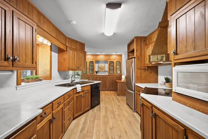Private woodland retreat on 5 acres in the Middleton-Cross Plains School District. This custom brick home is surrounded by mature trees, landscaped gardens, and sweeping rural views. Inside, enjoy natural light, warm wood finishes, and scenic vistas from every room. The main floor features a spacious living room, built-in dining area, and a thoughtfully designed kitchen. A versatile detached shop with loading docks is ideal for hobbies, storage, or a small business. Trails, wildlife, and total privacy offer a rare lifestyle of peace and space—just minutes from town.