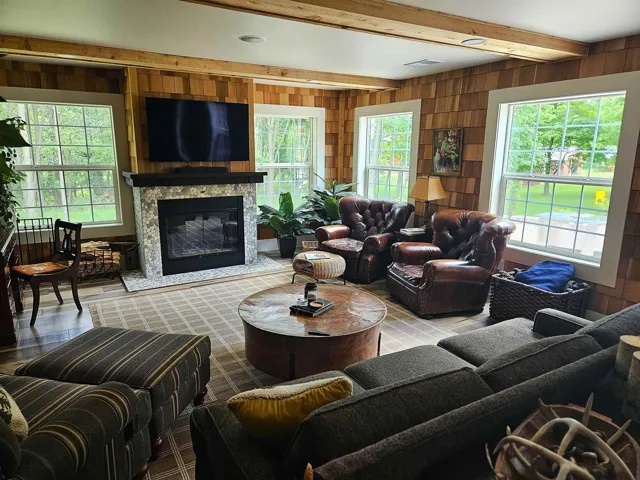 This amazing 230-acre retreat located on Comstock Lake offers the ultimate destination for fun and relaxation. A half mile long private driveway winds through the fields and trees to an isolated brand new 2024 Construction 8,000 sq ft barndominium with custom built 2 bedroom, 2 bath home feature custom kitchen, pantry, master bedroom, 2 wood burning fireplaces, game room, covered patio, dog run, and an enormous shop area. A second 2024 remodeled 4 bedroom, 2 bath guest farmhouse with screened porch, 2nd level deck, ground level deck, on 1600 feet of lakefront, 3 miles of newly constructed trails, trout stream, 6 ponds, and over 15,000 newly planted trees throughout the property. Enjoy hunting, fishing, swimming, atv, horseback riding…this place has it all!