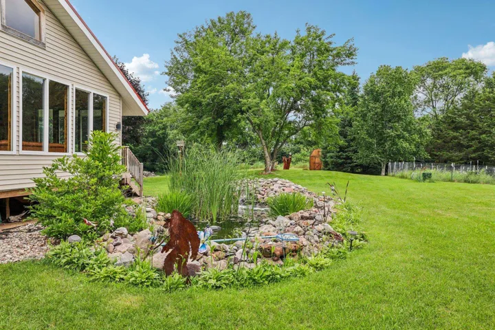 First time on the Market for this lovingly cared for Ranch home with spacious and open floor plan. Main level with vaulted ceilings, open concept kitchen/dining/living rooms offers Hickory cabinets, granite tops, newer appliances. Living room offers hardwood floors w/ gas fireplace and walk out to the deck overlooking the backyard patio for entertaining or quiet times listening to the rockscaped pond. Newly finished 4 seasons room offers vaulted ceilings and a great space with plenty of natural light. Basement includes Rec Room with walk out as well as another bedroom, full bath, dry bar and utility/laundry area. All of this situated on a well manicured 1 acre lot w/ mature trees just minutes off I39.