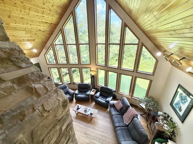 Set on 36 picturesque acres, this impressive estate boasts a spacious 5-bedroom, 4-bath home, perfect for luxurious country living. The property features a 4-stall barn, a 6-acre fenced paddock, a natural stone patio, a pergola, a fire pit, and additional wooded land, offering a private and tranquil environment. With 19 tillable acres, there are plenty of opportunities for sustainable living. The great room is stunning, showcasing cathedral ceilings that allow natural light to cascade throughout both the first and second levels. The floor-to-ceiling stone fireplace contributes to the property’s beauty and energy efficiency. The kitchen is equipped with stainless steel appliances and features beautiful granite countertops, making it an ideal space for cooking and entertaining.