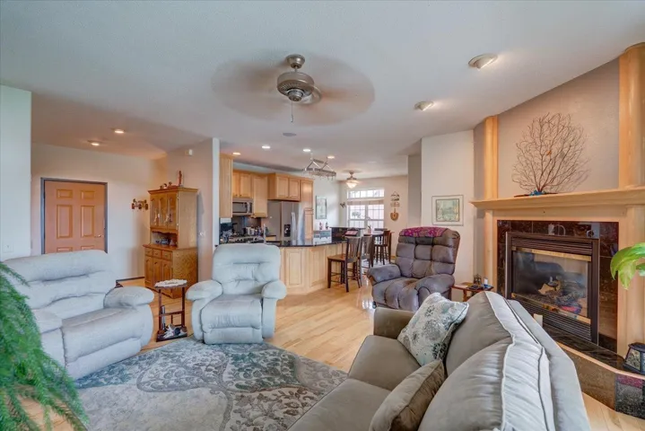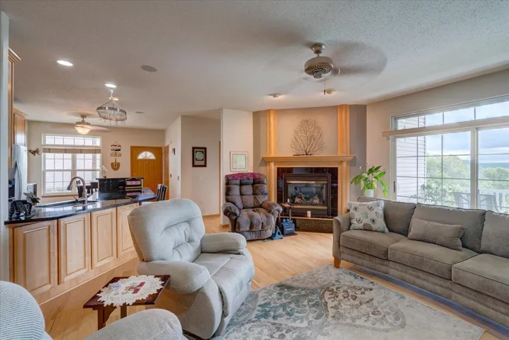 Year-round, lakefront living awaits! Zero-step private entry, open-concept, end-unit ranch condo w/ stunning views of Lake Wisconsin set in a quiet community w/ hardwood, hickory floors throughout. Main-level living includes primary, en suite bedroom w/ walk-in closet & updated full bath w/ walk-in jetted tub, tiled bath & shower, second bedroom & full second bath & large great room & walk-out balcony. Fully finished LL boasts a 3rd bedroom and 3rd full bath, huge rec room & walk-in cedar closet. Main & LL gas fireplaces. High end finishes- granite countertops & backsplash, SS appliances, extra tall, custom hickory cabinets & 2 pantries! Boat/ golf cart/walk to nearby beaches & watering holes. Boat slip rental available. Seller including UHP “Ultimate” Home Warranty.