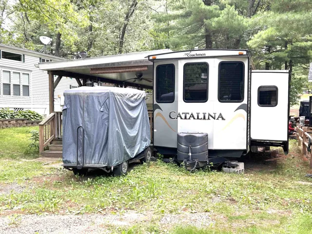 You still have time to enjoy the summer! Condo fees have been paid for the year. This 2 bedroom camper is wonderfully maintained and can sleep 8-9 people. The gigantic covered deck is amazing and has plenty of room for everyone. This retreat is affordable and ready for you. Located at Jellystone Park in Warrens, you can enjoy all of the amenities offered by that park: mini golf, outdoor movies, sandy beach, water slides, wave pool, lazy river, live music, arcade, restaurant and endless activities. Seller is including the golf cart, storage shed and more.
