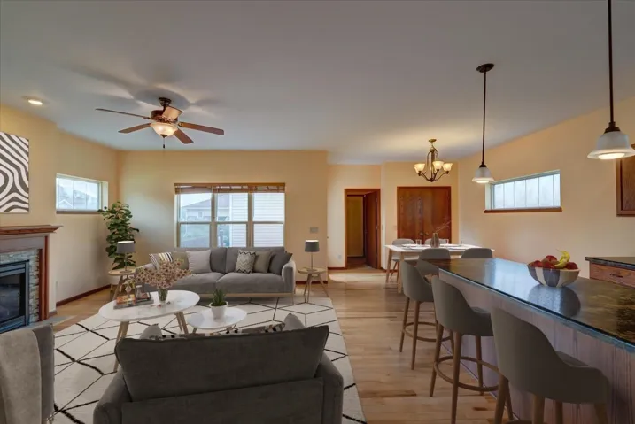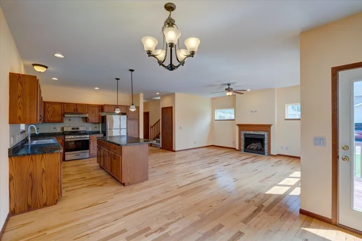 Beautifully designed home in the Hidden Oaks neighborhood exudes warmth & charm throughout. Natural light fills every room, showcasing a great room with open concept layout, 9 ft ceilings, and a gas fireplace. Kitchen features SS appliances, a spacious island and a generous walk-in pantry. Hardwood floors throughout the entire main level including an office/flex room that could function as a 5th bedroom. Step outside to your deck that is perfect for entertaining or sipping your morning coffee. Upstairs, the primary suite offers a walk-in closet & ensuite bath. Lower level includes an extra play area, bathroom, & theater room w/Atmos Dolby surround sound, built-in speakers. Located on a quiet street near trails, parks, & short drive or bike ride to downtown Middleton & Greenway Station.