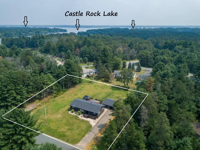 Well-maintained 3-bedroom, 2-bath ranch on 0.63 acres, just a short stroll to Castle Rock Lake! Enjoy a functional split-bedroom floor plan, newer roof & updated tile/vinyl flooring. The open kitchen & dining area flow seamlessly onto a huge new back deck w/ gazebo—great for entertaining or relaxing. Basement w/ bonus room & crawl space for extra storage. Oversized 30×22 garage, natural gas & high-speed fiber internet. The yard is ready for landscaping can be easily customized. Located on an ATV route with direct access to snowmobile trails. Walk to the lake or take a short bike/UTV ride to the iconic Dirty Turtle tavern. Marina nearby—boat slips may be available. No HOA restrictions & short-term rentals allowed, making this the perfect full-time home, weekend getaway, or potential income!