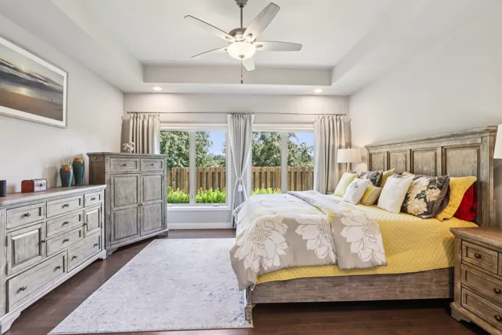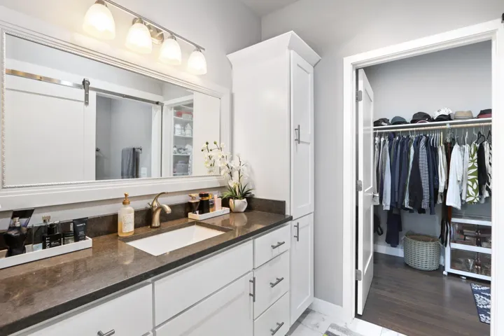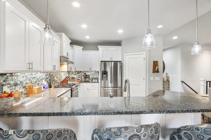 This ranch duplex lives like a single-family home, offering comfort, style, and quality throughout. The open layout creates a spacious feel, highlighted by beautiful hardwood floors that flow seamlessly though the main living areas. A modern kitchen features solid countertops, stainless appliances, and tasteful finishes, making it both functional and inviting for everyday living or entertaining. With carefully selected details and craftsmanship, this home combines convenience with elegance, providing all the benefits of a single-level lifestyle in a setting that feels truly private and refined. With a lower-level setup with a fitness area, one could keep in shape or convert to additional entertaining space.
