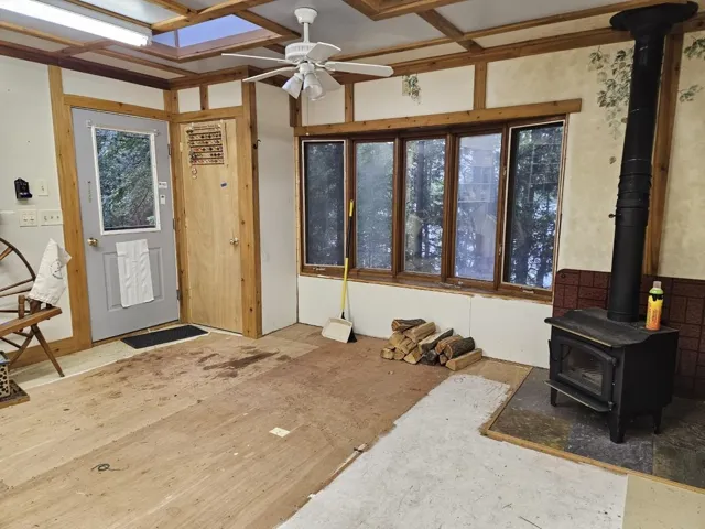 Nestled on 156 feet of northwest-facing Sunset Lake frontage, this tranquil 3 bedroom, 2.5 bath raised ranch offers peaceful lakeside living with abundant wildlife. The main level features a spacious living room with gas stove, dining room, kitchen & flexible dining area or family room. A ½ bath off the front entrance adjoins the primary bedroom. The other 2 bedrooms & a full, updated bath complete this level. The walkout lower-level has a rec room with woodburning fireplace, laundry, ¾ bath, storage & access to the 2-car drive-under garage. Enjoy outdoor serenity from the front deck or rear patio. A 1-car detached garage with studio/workshop above is perfect for hobbies. The home could use updating and TLC, but its serene setting makes for a rare opportunity to create your dream retreat.