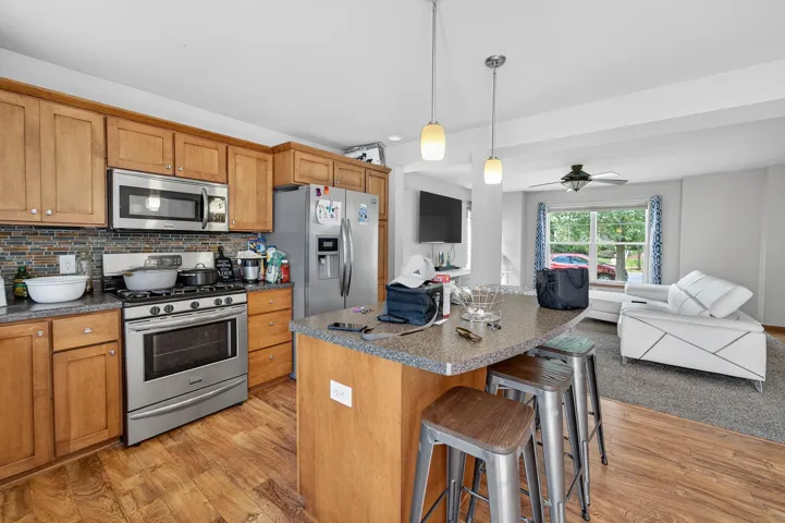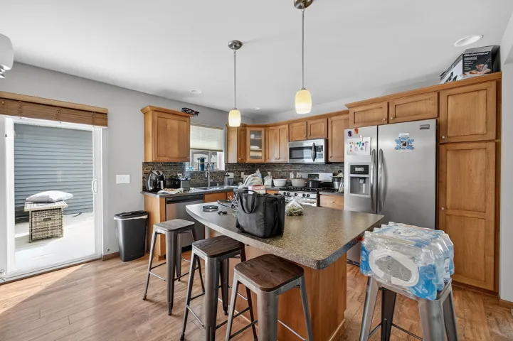 Welcome to Smith’s Crossing! Beautiful 3 bedroom 2 story home nestled just a block away from walking trails, playground, and green space at Thoreau Park. Enter inside to find an open concept floor plan w/ living room and well appointed kitchen w/ all stainless steel appliances, tile backsplash, breakfast bar/island & dining area w/ walkout to wood deck – great for grilling. Upstairs enjoy all 3 bedrooms incld. Owners suite w/ private en-suite bathroom & secondary full bath. The finished basement boasts a family/rec room with dry bar & full bath, perfect for entertaining or relaxing. Not to mention the main level laundry, 2 car attached garage & fenced in yard spacious enough play grounds & trampolines. Don’t miss out!