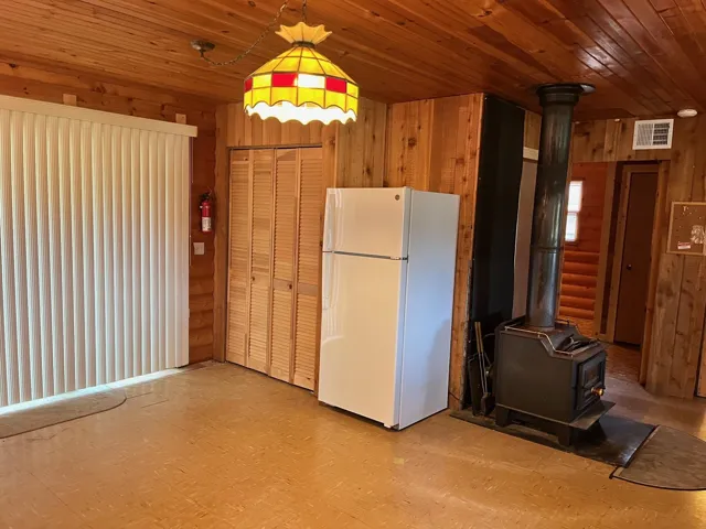 Castle Rock Lake Sand Beach Access beautiful Log Sided 24′ x 30′ Home with Metal Roof & 10×26′ Enclosed front Porch/Sun Room, very well maintained with beautiful location near Castle Rock Lake, 105′ x 191′ Wooded Lot, very nice area, rustic interior, Open Living Room & Kitchen, Two Bedrooms, Full Bath, new Lp Gas furnace! Wood Stove in Living Room! Patio Doors off Kitchen to 5’x8′ Deck, 24′ x 30′ Garage with electric & gravel floor, great for storage! Come enjoy Castle Rock Lake.