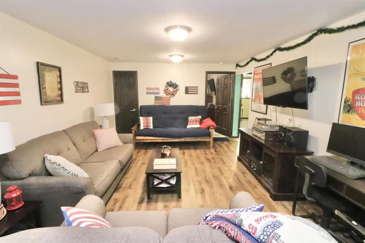 Expertly built in 2019 by Engineered Construction, this 5-bedroom, 3-bathroom home showcases quality craftsmanship and thoughtful design throughout. The open-concept main level features custom cabinetry, a spacious kitchen, and seamless flow into the living and dining areas. Step out to the inviting screen porch overlooking your private in-ground heated pool, perfect for entertaining or relaxing. The finished lower level offers a full wet bar, game room, and large living room, creating the ultimate gathering space. With a 3-car garage, fenced-in yard, and location in a beautiful subdivision, this home combines luxury, comfort, and function in one impressive package.