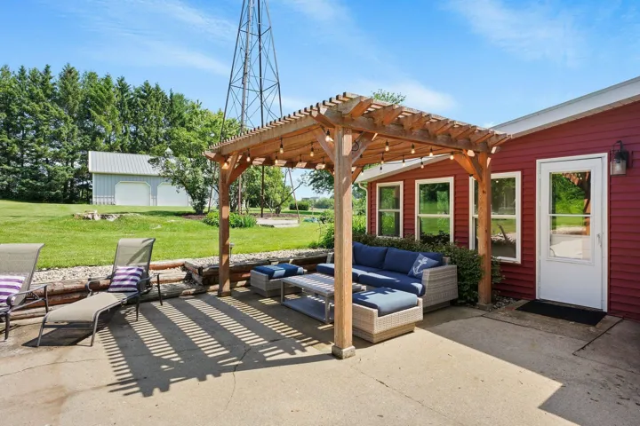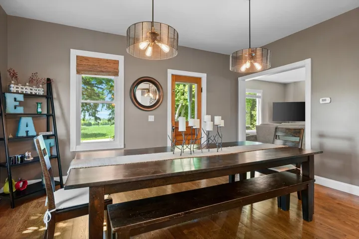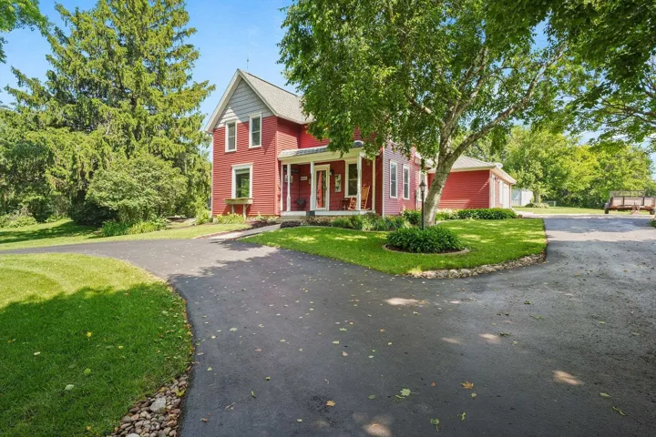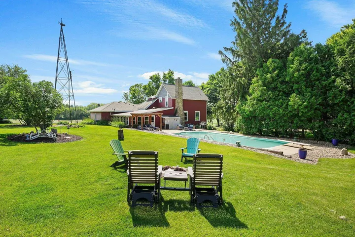 Escape to your dream country retreat, blending timeless charm & modern luxury. This impeccable home features a spacious open-concept kitchen w/a large island, flowing into an elegant dining area. Enjoy a cozy office with an electric fireplace, add. 18 x 8 office, an expansive 4-season porch, & main-level laundry. Upstairs, find a generous primary suite and two bedrooms. One-car attached garage and a 30×48 Morton bldg w/2 oversized stalls and an insulated shop offer ample storage. Relax on the inviting front porch, explore mowed trails, or gather by the firepit among fruit trees and raspberries. The stunning inground pool and patio create a summer oasis. Measurements approx. Seller willing to retain lot w/list price $625,000. More acreage avail.