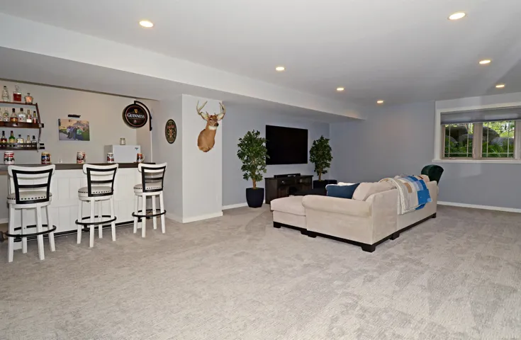 Simply stunning ranch style home in highly desirable subdivision & school district. Parade builder. Upgrades & highlights: elegant kitchen dining & island, granite tops & tile backsplash, vaulted living room w/ gas fireplace – main level living/laundry/handicap accessible – relaxing sunroom – closet systems throughout – dream garage w/ epoxy floor & custom-built storage closets. Gorgeous outdoor spaces w/ beautiful perennials, large deck, patio & firepit areas – black iron fenced-in back yard! Lower level bar & game room, 1 bedroom & full bath. Lots of storage. Immaculate & move-in ready! Dimensions & Sq Ft are approximate. Please verify if important.
