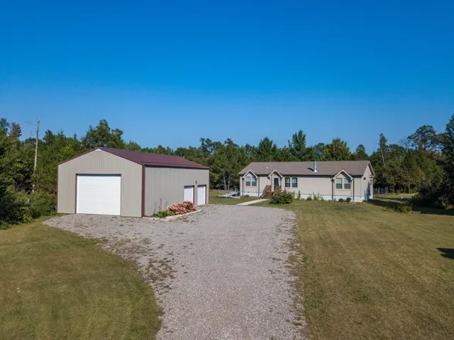 Discover this inviting 3-bedroom, 2-bath home set on 10.10 acres, offering a fantastic blend of comfort and outdoor adventure. Built in 2019, the home features a full unfinished basement, giving you endless potential to expand and customize to your needs. All appliances are included, making it move-in ready. The property also boasts a 30′ x 50′ pole building with three garage doors, great for storing vehicles, boats, or recreational toys. Outdoors, enjoy groomed trails that wind through the acreage, wonderful for hiking, ATV rides, or simply soaking in the natural beauty. Conveniently located near Castle Rock Lake and the Yellow River, this property offers both privacy and access to year-round recreation.