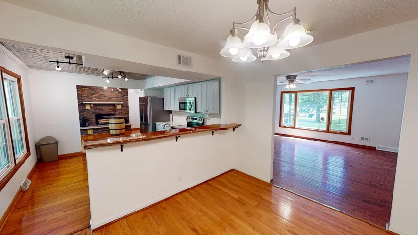Apple Valley Living! Beautifully maintained 5 bed, 3.5 bath, 2 car garage home on a corner lot in coveted Apple Valley. Home features a beautiful wood burning fireplace, hardwood floors, large open rooms with large windows to let natural light shine through! Property is tastefully finished with custom cherry slab Countertops, vessel sinks and MORE! Primary bedroom features a ensuite bathroom complete with a large custom shower with LED lighting, frameless glass door, shower panel and attached walk in closet with custom shelving! The main part of the home is amazing, but don’t overlook the large recently finished basement with a large entertainment space, full bathroom and finished laundry room. This home checks all the boxes!