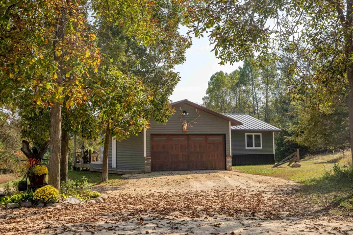 Hunters & wildlife enthusiasts take note! Rare 80-acre property is the ultimate blend of privacy, nature and convenience just ten minutes from I-39. 2br home finished in appealing neutrals has open concept kitchen/living/dining area and wood stove to help keep the chill off. Two bedrooms, main level laundry, partially finished basement with rec room and storage area. Well-planned covered porch and wrap-around deck allow enjoyment of surroundings. Steel roof and easy-care siding lend to the low maintenance of this home. Attached garage & storage shed for vehicles, lawn tools & other toys. Beautiful trails throughout and 20ac of fenced-in pasture. Great care given to prairie wood land management. Known for trophy bucks, the acreage offers plenty of space for the whole group to hunt.