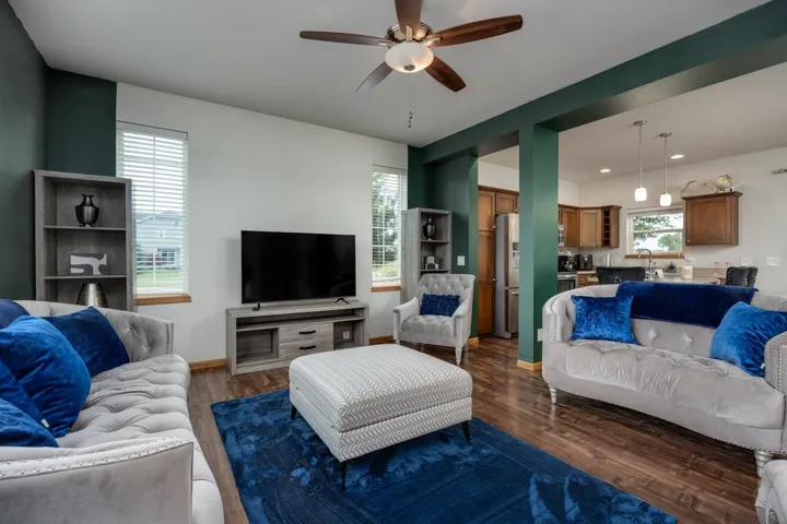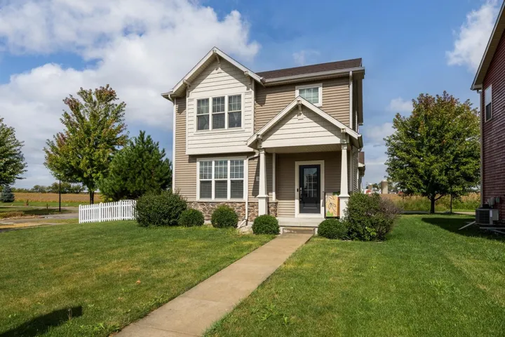 Only available due to a job relocation! Well-loved home in fantastic location within desirable Smith’s Crossing subdivision. Bright and cheery main floor features an open layout, main laundry room, half bath, and gorgeous wood LVP flooring. Kitchen offers beautiful cabinets, large island, and stainless appliances. Spacious living room is perfect for gatherings. Upstairs includes a primary suite with walk-in closet and bath plus two additional bedrooms and full bath. Full basement provides amazing future potential for more finished space. Sellers are leaving the basement home gym for your convenience! Exterior has a fenced yard, large patio, and 2-car garage. Corner lot backing to farm fields adds lovely views with privacy. Don’t wait on this beauty!