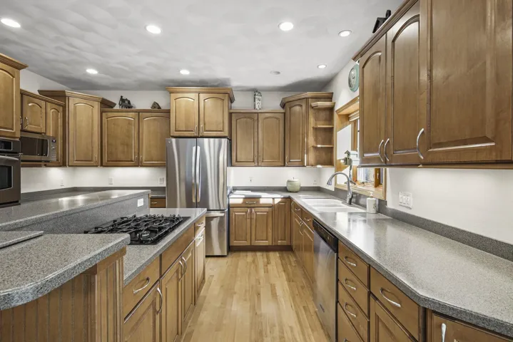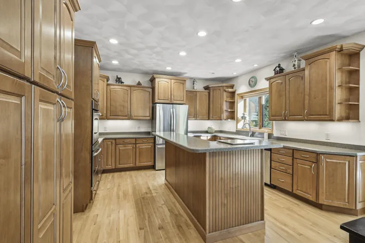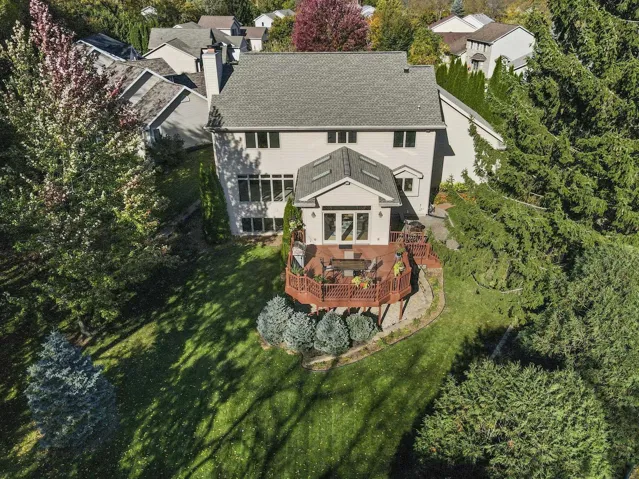 Nestled on the end of a quiet cul-de-sac, this premium built home offers thoughtful updates & a picturesque, wooded lot. You’ll love the wood-burning FP w/ a floor-to-ceiling stone surround, sunroom w/ skylights & panoramic backyard views, UL laundry, & the oversized insulated 3+ car garage for all your toys. The gourmet kitchen boasts solid surface counters, double convection ovens, & a gas range, while the primary suite features a jetted tub & full body walk-in shower. The finished, exposed LL includes a wet bar, 3rd full bath, & an exercise studio, easily converted back into a 4th bdrm to fit your needs. The highlight of the property is the peaceful & private backyard, complete w/ a composite deck, paver patio, sprinkler system, & mature trees. New roof, skylights, & furnace in 2025!