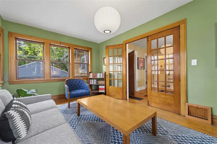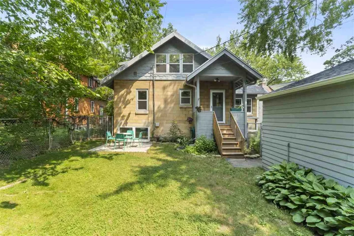 Inviting 4 bed/3 bath Craftsman Bungalow with original character and modern updates! Relax on the 22′ front porch with swing, perfect for summer evenings. Main level features oak floors, spacious living room with stone surround wood burning fireplace, dining room, sunroom, plus 2 bedrooms and a full bath. Updated kitchen offers solid counters, stainless apps, and tile backsplash. Upstairs, the private primary suite includes an office nook, walk-in closet, and bath with dual vanities and tiled shower. Finished lower level adds rec room, bedroom, bath, storage, and bike garage. Outside has a 2-car garage, patio, and mature landscaping. Prime location on a quiet street just off University, walkable to UW/VA Hospital, Hilldale & University of Wisconsin Campus.