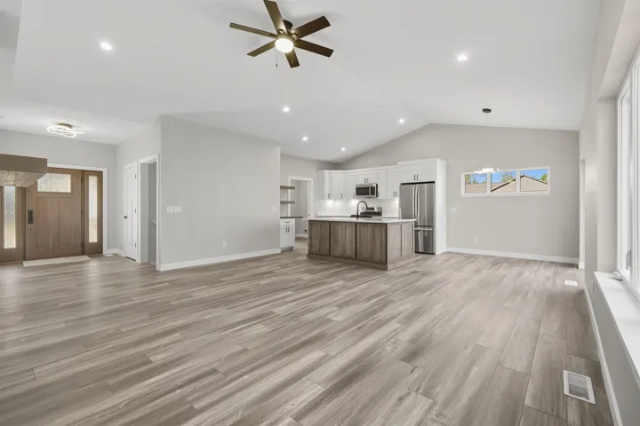 Discover effortless living in the sought-after Saddle Ridge Community! This ranch-style home features zero-step entry, a 2-car garage, vaulted ceilings, floor-to-ceiling fireplace, and Amish cabinetry with quartz countertops. Year-round amenities include Swan Lake, two golf courses, pickleball, basketball, and a community pavilion. The spacious main-level primary suite flows seamlessly with the open floor plan and 36″ doorways. Bring your ideas for the unfinished basement to create even more living space. Located in Town of Pacific with low taxes. Condo fee: $180.