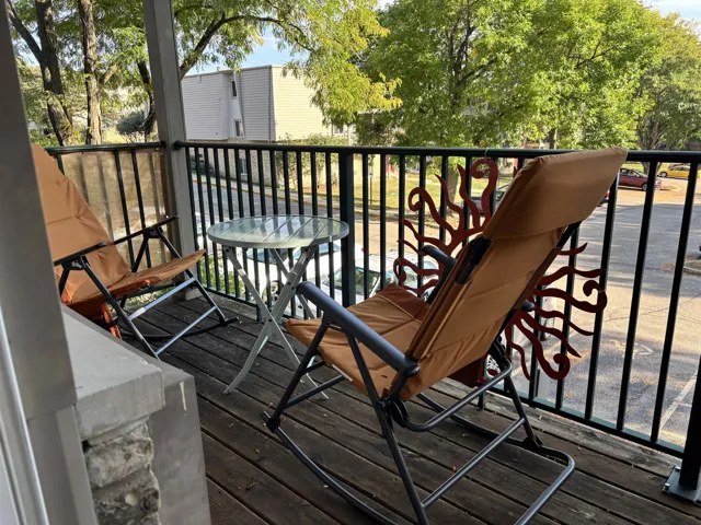 Clean, move-in ready condo in building that backs up to park near Sandburg Woods. Unit Carpeting & paint new in 2022. New light fixtures in Kitchen & Dining Area. Barn board facing on breakfast bar. New shower head in bathroom. Similar units have installed their own stacker laundry equipment in the bathroom. Balcony with privacy screening at side rails. Association has private pool, sauna and 24-hour fitness center. Shared laundry on main floor of building, locked bike storage room, & private storage locker. Condo fee includes heat. Near bus line, shopping and dining, and easy access to highways and Interstate.
