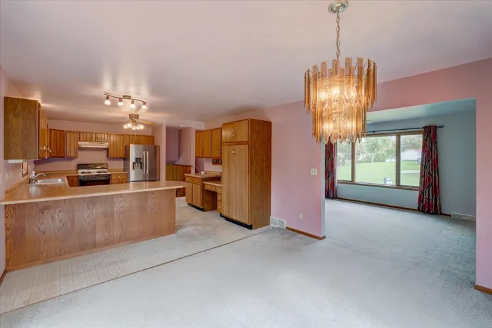 80 ft of frontage on Rock River. This home offers a great opportunity for buyers looking to personalize their space. Featuring 4 generously sized bedrooms, 2.5 bathrooms, large kitchen and dining area. A spacious living room and family room each with their own wood burning fireplace create an ideal setting for relaxing evenings or entertaining guests year round. Being sold as-is, this home has solid potential with room for updates and improvements to make it your own.