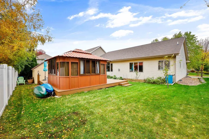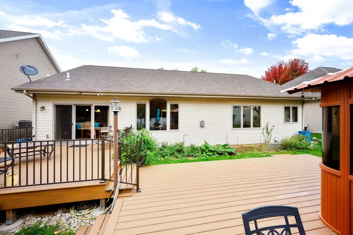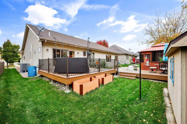 Beautifully built and maintained ranch home in the Middleton School District! Warm, sunny and inviting with attention to detail, including arched doorways, hardwood floors, vaulted ceilings and plenty of space to rest and recharge inside and out! Kitchen features beautiful birch cabinetry, stainless appliances, breakfast bar & spacious dining area. Primary suite with walk-in closet, tray ceiling, private bath with dual vanity, soaking tub & separate shower. Main floor has 2 add. bedrooms, a full bath & laundry. Incredibly spacious lower level allows for many options- fully equipped theater room, rec room, office space, guest room & 1/2 bath and tons of storage space! Backyard with spa gazebo, shed and fantastic deck for entertaining! Easy commute to EPIC, west Madison & Middleton!