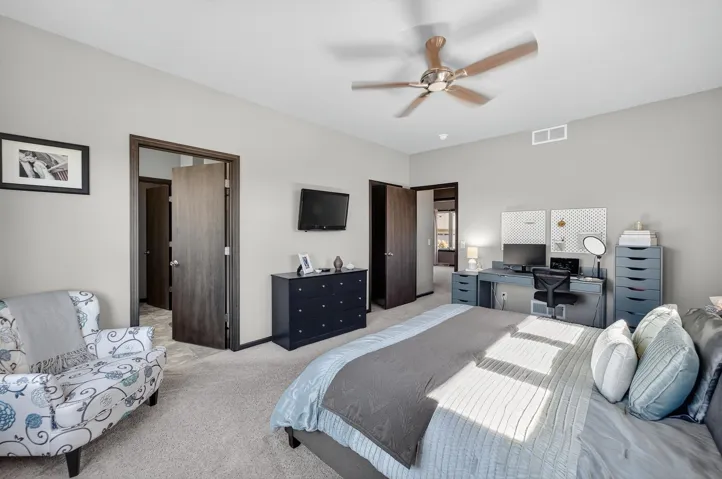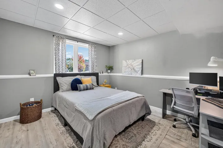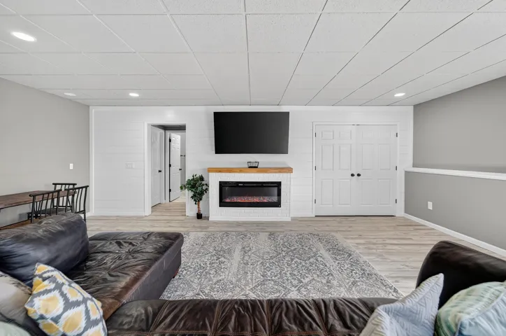 Stylish & move-in ready 4 bed/3 bath ranch style home in the delightful Blue Mounds! You’ll be charmed from the moment you step into the bright living room boasting vaulted ceiling, electric fireplace, & a shiplap accent wall. Eat-in kitchen features all stainless appliances, island/breakfast bar & dining area w/ access to the back deck overlooking yard. Main level laundry room & separate mudroom off the oversized 2 car garage w/ 220v heating. 3 main level bedrooms include the owners suite w/ walk-in closet & private en suite bathroom w/ dual vanities & walk-in tile shower. Recently finished & exposed LL has a spacious family/rec room wired for home audio (roughed for wet bar) w/ electric fireplace perfect for both entertaining or relaxing, an add’l 4th bedroom & full bath!