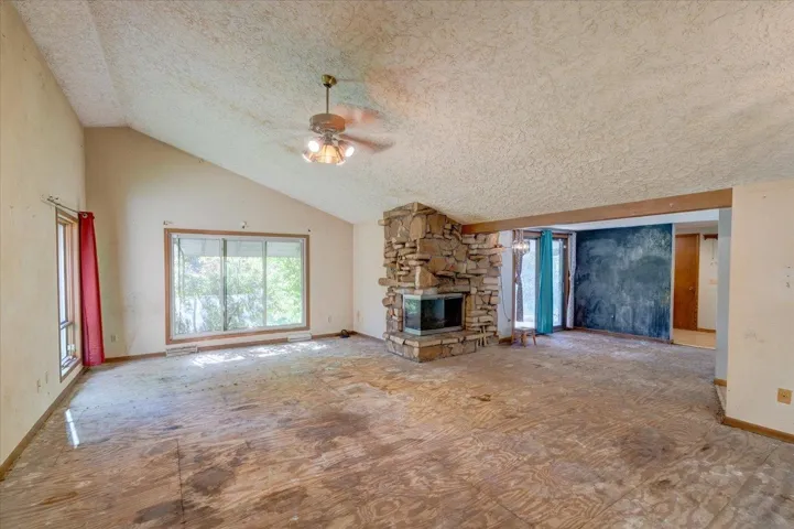 Spacious 3-bed, 2-bath ranch in the quiet Morrisonville subdivision of Windsor, near DeForest and Sun Prairie. Set on a large lot with a peaceful rural backdrop, this home features vaulted ceilings, big picture windows, and a striking two-sided stone fireplace in the open living area. Needs significant cosmetic updates to flooring, paint, and general interior finish work, but offers great bones and layout. With strong comparable sales nearby, there’s excellent potential to build equity quickly and make it your own. Full unfinished basement for future expansion, main-level laundry, and private yard with mature plantings. Convenient to parks, schools, and Hwy 51 for an easy Madison commute.