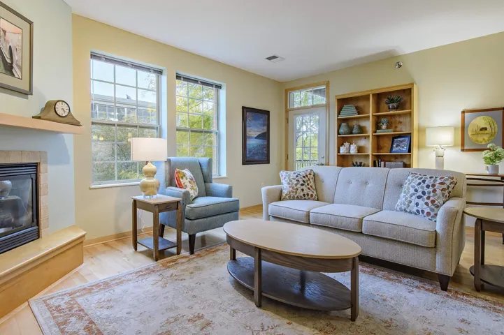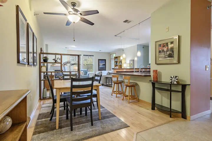 Immaculate 2-bed/2-bath downtown Sun Prairie corner-unit condo available. All you have to do is move in! You’ll be amazed at how spacious this condo feels w/ high ceilings & open concept living area. Gorgeous real wood floors in the living room & dining room. LVP in 2nd bedroom & new carpet in primary bedroom. Walk-in closets in both bedrooms. You’ll enjoy cooking in this kitchen that contains plenty of counter space & lots of cabinets. Newer refrigerator, washer & dryer! Enjoy all seasons here, whether cozied up by the gas fireplace or enjoying a beverage on your private balcony. 1 assigned underground parking space & a separate storage unit. Walkable to downtown & easy driving access to libraries, parks, grocery stores, etc.