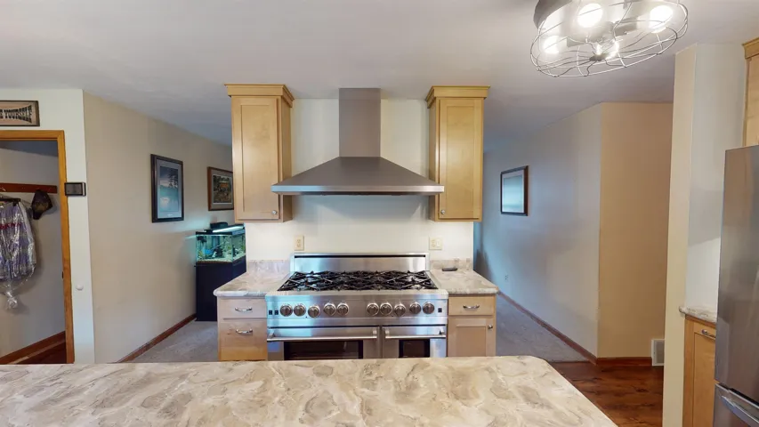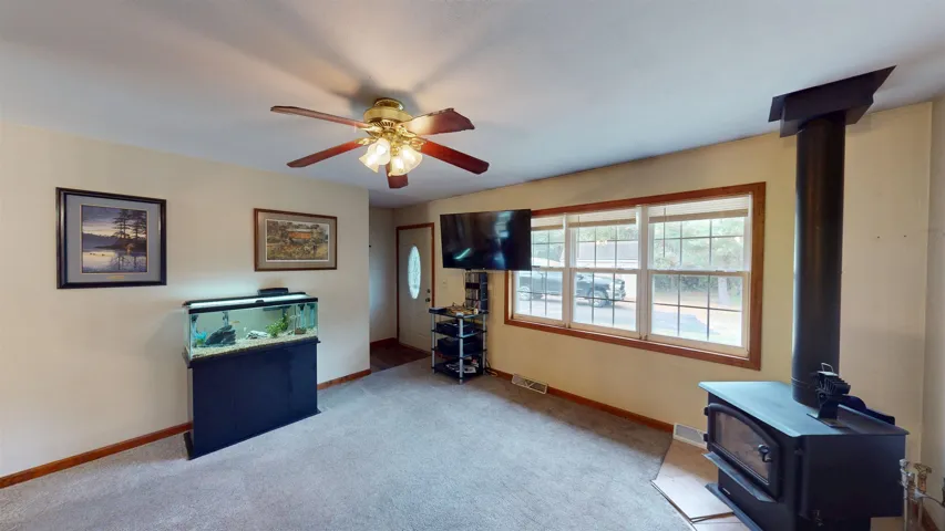 Nestled on a peaceful and private 3.1 acres, this beautifully updated 3-bedroom, 1-bath home offers the perfect blend of modern upgrades and serene country living. Step inside to a completely remodeled kitchen (2024), featuring brand-new appliances, stylish under-cabinet lighting, and a spacious center island—ideal for cooking, entertaining, or gathering with family. New flooring extends through the kitchen and hallway, creating a fresh, cohesive look. Additional recent upgrades include a new metal roof (2025) and a new hot water heater (2024), offering peace of mind for years to come. Stay cozy year-round with three heating sources: propane, pellet stove, and wood. The attached 2-car garage adds everyday convenience, extra storage space—a 20×14 shed, 12×14 shed, a carport, and kayak rack.